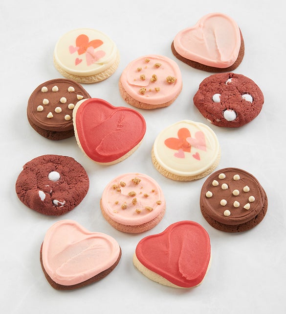 Make Valentine's Day as sweet as can be with an assortment of scrumptious cookies. We've included a wide array of delicious flavors, all designed to make hearts melt. Chocolate lovers can indulge in rich treats, such as devil's food chocolate, strawberry chocolate, and red velvet cake cookies. There are even more specialty treats, such as new and improved raspberry cheesecake crumb cookies and buttercream-frosted sugar cookies with hearts printed directly onto the frosting. Everything arrives individually wrapped and freezes great, so there'll be plenty to snack on long after the big day of love. OU-D