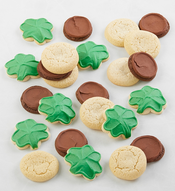 Send good luck to friends and family with a sampling of our best individually wrapped assortment. We’ve included buttercream frosted shamrock cut-outs, our triple chocolate frosted and our old-fashioned sugar cookies carefully delivered in a classic bow gift box! 24 cookies.